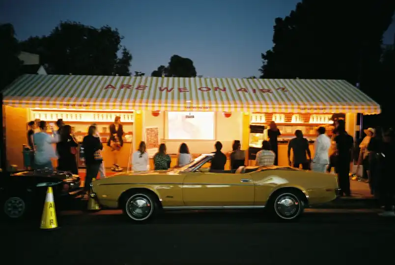 “Are We on Air?” says the awning of Kiosk-o-thèque on Hollywood’s Sunset Boulevard. It’s the latest project by Arman Naféei, host of a monthly podcast also called Are We on Air? and founder of creative agency Studio Neu. The kiosk is opposite the Chateau Marmont. Naféei spotted it when he was the hotel’s director of ambiance, a role that tasked him with creating the perfect mood for guests.