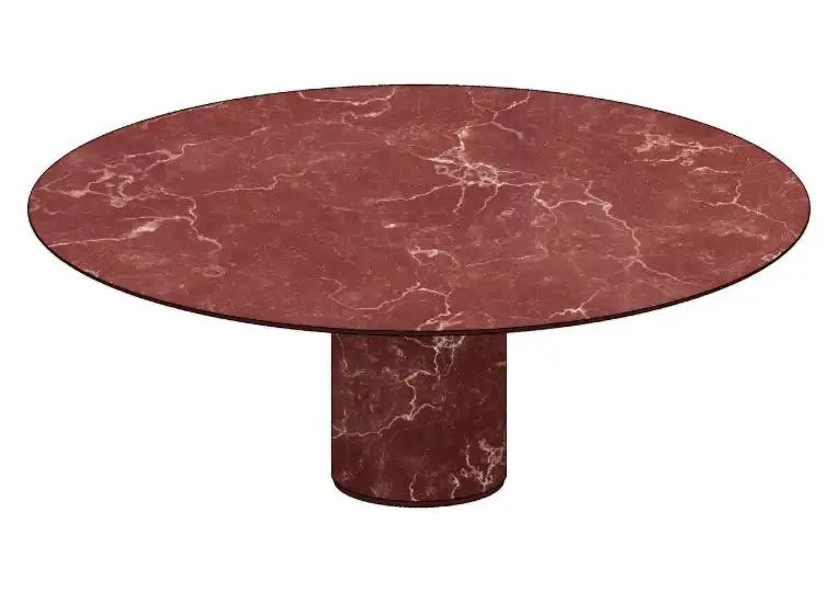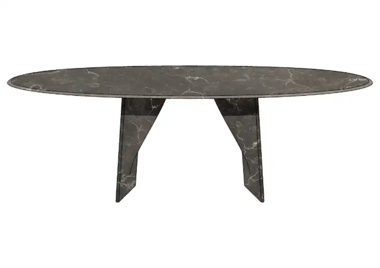 Now for a design that commands attention. Crafted primarily from marble, this table is a feat of natural material beauty. Available in elliptical and round iterations, it brings a sculptural presence to interiors.