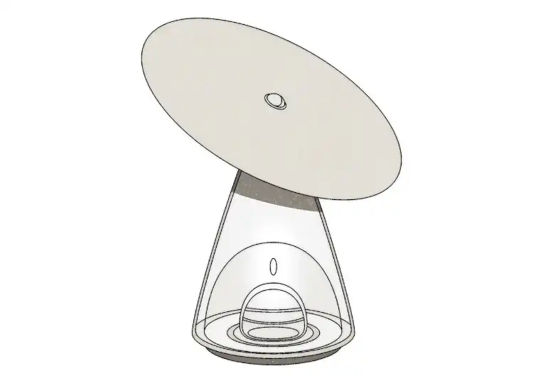 This playful lighting element consists of a metal disk that rests on a pyramidal clear-glass base, courtesy of Swiss architecture firm Herzog&De Meuron. Its lightweight form is a masterclass in the technical art of light design.