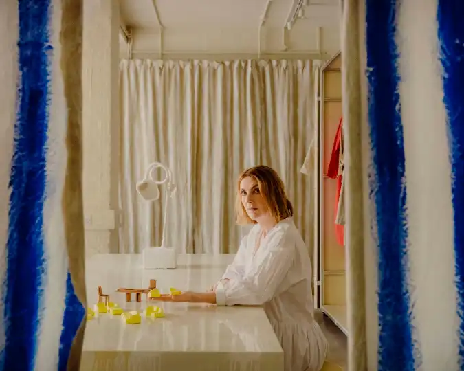 As a designer, Toogood infuses her work with a tenderness rarely spoken about in the design industry. Her Roly Poly chair’s voluptuous shape draws inspiration from her personal experience of pregnancy and motherhood. To sit in her Gummy armchair is to receive an upholstered hug. “I’m quite a tactile person, an emotional person,” she says. “I often feel like a thermometer because I’m hypersensitive to the energy of what’s going on around me. A lot of my designs are autobiographical but they’re also out of genuine care for others.”