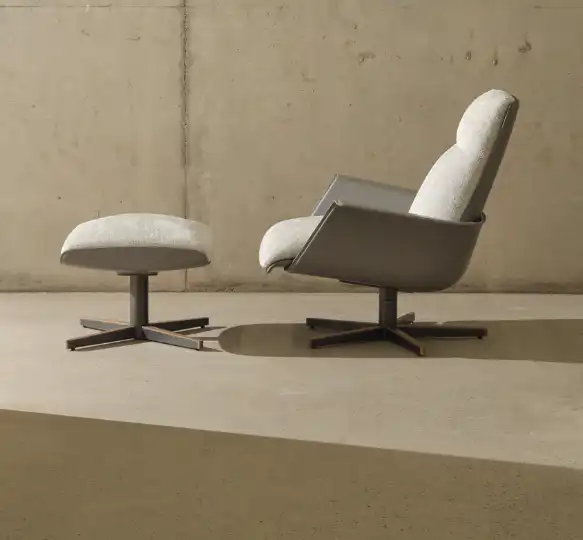 No cosy lounge or office is complete without a comfortable armchair – and this swivel wing chair and ottoman is the perfect design-minded addition. Made by Brianza-based Giorgetti, the Clori model is defined by its five-spoke metal base, finished with solid Canaletto walnut inserts.