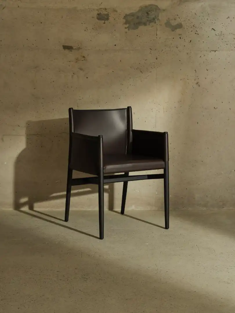 Italian designers and architects Gabriele and Oscar Buratti’s leather-clad Ayon is the perfect perch for dinner parties. Its slender frame is made from ash, with upholstery in several hues. It celebrates the slight natural imperfections of wood and leather, adding character to a well thought-out seat.