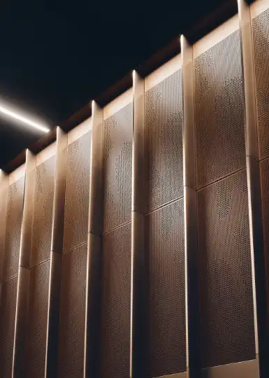 Bronze-coloured wall linings on the platform(Image: Peter Bennetts)