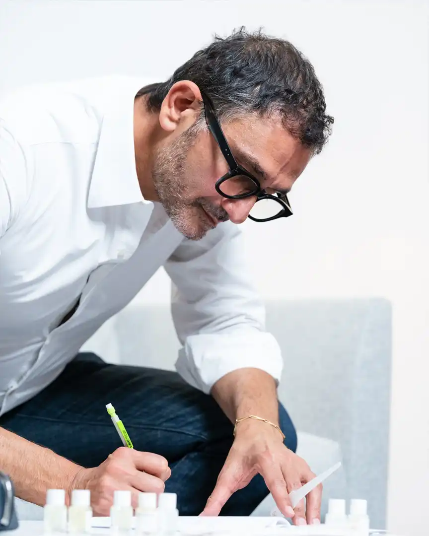 Kurkdjian says that he doesn’t envy those trying to match his work. “I prefer to be copied than to be asked to copy other people.” He’s highly confident in the uniqueness of his creations. Kurkdjian’s first fragrance took the world by storm in 1995; Le Mâle for Jean Paul Gaultier became a scent blockbuster. “I was just 25 years old,” he says. “How do you follow that? I had to reinvent myself.”