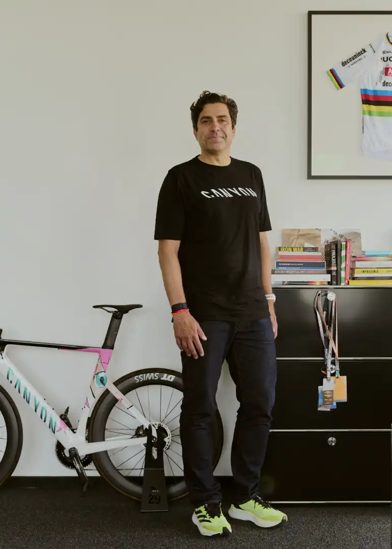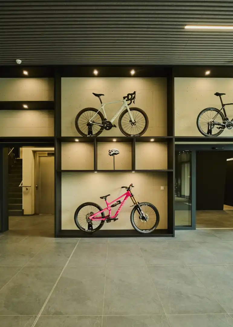 Founded as a bicycle retailer called Radsport Arnold in the 1990s by brothers Roman and Franc Arnold, the company moved into manufacturing and by 2002 had renamed itself Canyon. Franc is no longer involved, while Roman sold a majority stake to Belgium-based investor Groupe Bruxelles Lambert (GBL) in 2020, retaining equity in the company as well as chairmanship of the board. Despite its desire to push into cities, Canyon’s brand DNA still draws on its sporty beginnings, with a focus on high performance, and there remains a strong link to athletes. This is something that Monocle sees while touring the showroom, where bikes used by cyclists including Dutch superstar Mathieu van der Poel are on display next to floor-to-ceiling windows. More than 50 riders were on Canyon bikes at the Paris Olympics and the company sponsors some 270 athletes, as well as having several high-profile ambassadors, including US basketball player LeBron James.