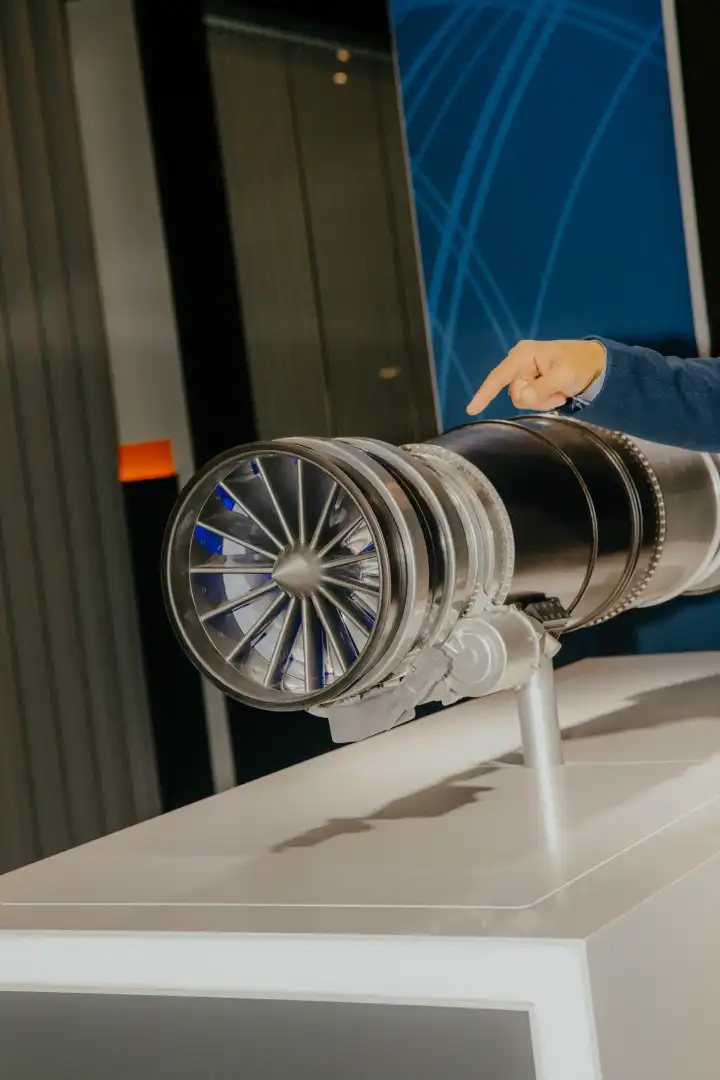 Small aircraft will serve as pioneers in this regard. The Cassio is French start-up Voltaero’s rear-propeller electric-hybrid aircraft. There are high hopes for the plane and Global Sky has reserved 15 of them during the show (232 were pre-ordered before the end of Farnborough). Jean Botti, Voltaero’s CEO and a former chief technical officer at Airbus, is an enthusiastic salesman. He sits us in the pilots’ seats and explains how the airframe can be adapted to carry passengers, post or cargo, or perform rescue operations. Future, larger models will have retractable undercarriages and pressurised cabins. “It could replace a lot of light aircraft and also compete with business aviation,” Botti tells Monocle. “There’s a lot of criticism of private jets and, of course, this is much, much cleaner. It will also be cheap to fly: €400 to €500 per hour.”